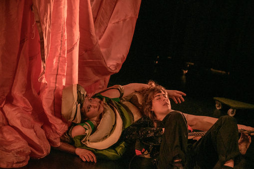 Alles beginnt mit einer Verschiebung der Achsen. Ein Raum, ein Horizont, ferne Flugzeuge. Denkende Gelenke, durch Smog gereiste Klänge, ein nicht länger aufliegender Kopf. Fünf Wesen finden sich auf der Suche nach Bewegungsarten zueinander und abseits des aufrechten Gangs. Physisches Horchen, Berührungspunkte, ein Geflecht von Körpern in geladener Verbundenheit. Ein verschobener Volkstanz in der kritischen Zone. Performance à 50 Minuten 17.3.2023, 20 Uhr 18.3.2023, 20 Uhr 19.3.2023, 18 Uhr 24.3.2023, 20 Uhr 25.3.2023, 20 Uhr 26.3.2023, 18 Uhr Die Platzzahl ist begrenzt. Reservation empfohlen via www.austellungsraum.ch Choreographie: Marie Jeger Performance: Eevi Kinnunen, Emma Saba, Juliette Uzor, Marie Jeger, Tyra Wigg Dramaturgie: Franca Schaad, Musik: Lukas Rickli, Licht: Thomas Giger, Produktionsleitung: Céline Hafner, Bild: Ronja Burkard, Grafik: Simon Krebs, Koproduktion: Ausstellungsraum Klingental mit Unterstützung von Fachausschuss Tanz & Theater BS/BL, Ernst Göhner Stiftung, Schweizerische Interpretenstiftung SIS, SWISSLOS-Fonds Kt.Solothurn